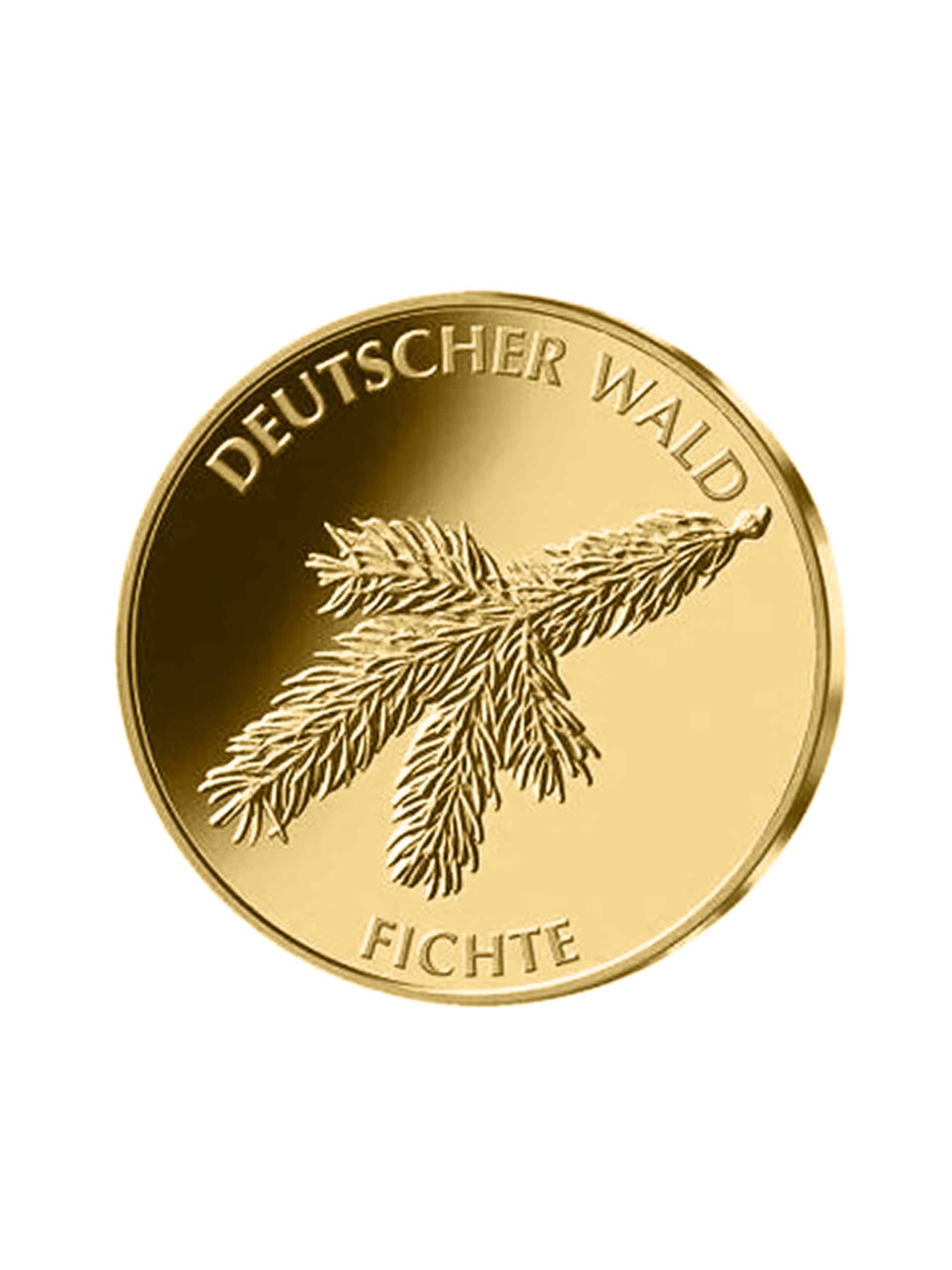Deutscher Wald: Fichte 2012 – Deutschland 20 Euro – 1/8 oz (3,89g) Goldmünze 999,9/1000.